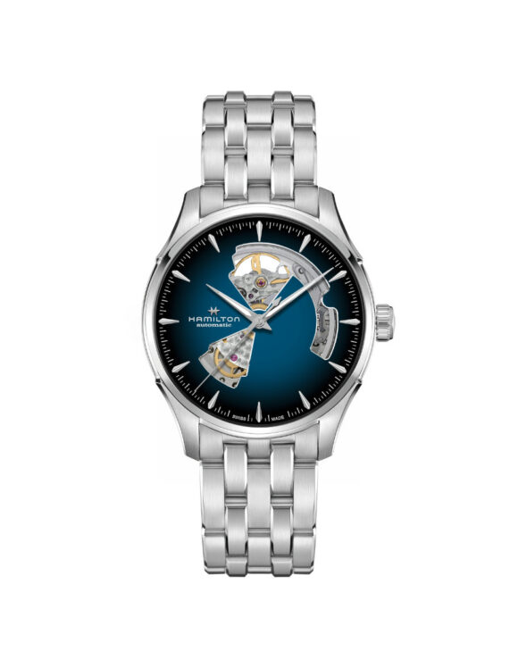 L'orologio Hamilton Jazzmaster si distingue per la sua cassa in Acciaio, finitura alternata dal diametro di 40 mm. Il design è incentrato sul quadrante Blu, protetto da un resistente vetro in Zaffiro che assicura massima chiarezza.