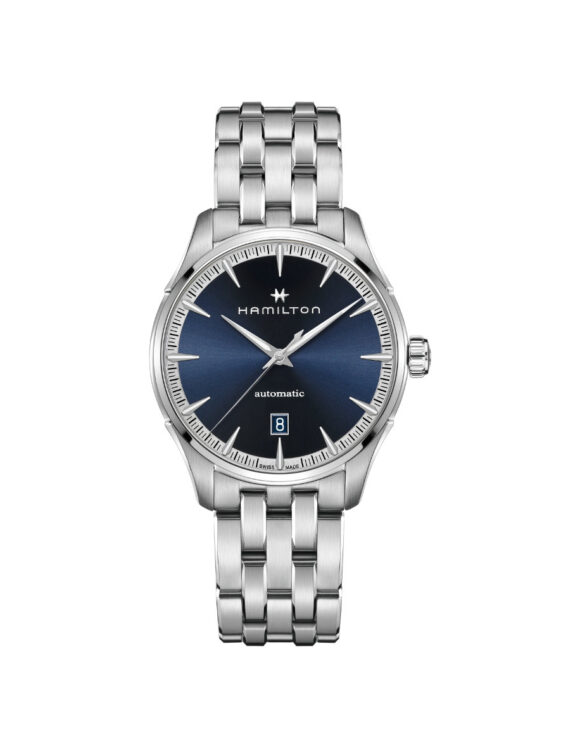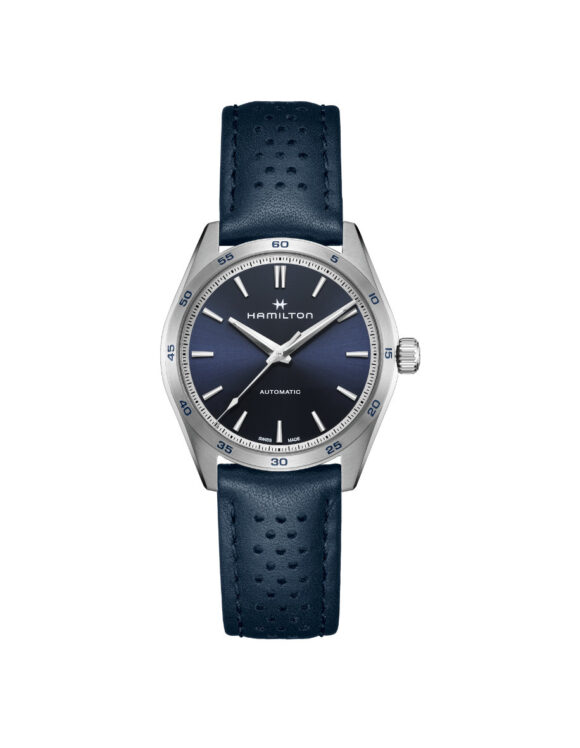 L'orologio Hamilton Jazzmaster Performer Auto Chrono 42mm si distingue per la sua cassa in Acciaio, finitura alternata dal diametro di 42 mm. Il design è incentrato sul quadrante Blu, protetto da un resistente vetro in Zaffiro che assicura massima chiarezza.