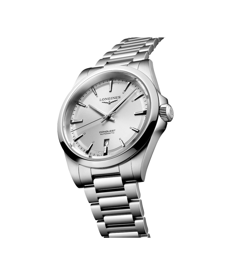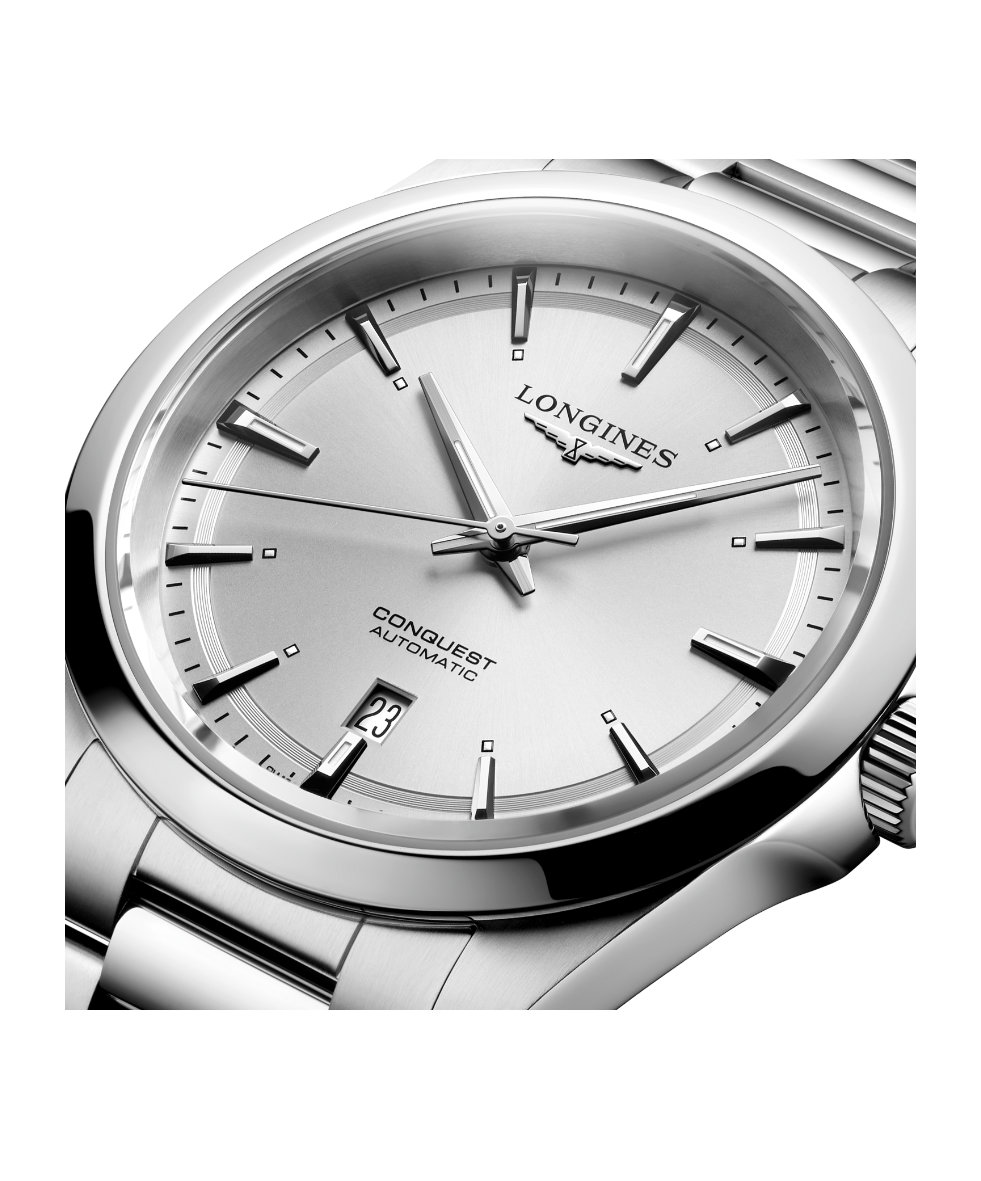 L'orologio Longines Conquest Auto 41mm si distingue per la sua cassa in Acciaio, finitura alternata dal diametro di 41 mm. Il design è incentrato sul quadrante Argento, protetto da un resistente vetro in Zaffiro che assicura massima chiarezza.