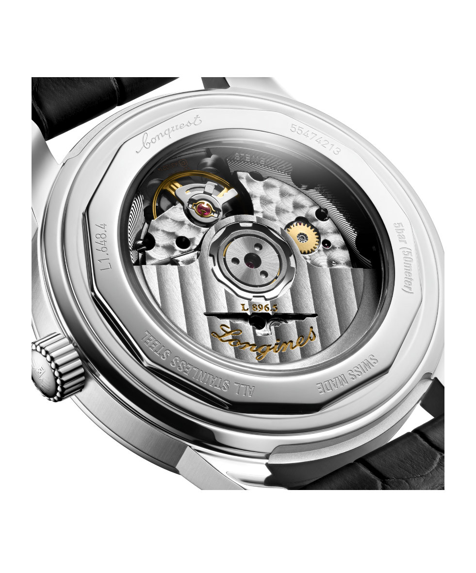 L'orologio Longines Conquest Heritage Central Power Reserve Auto 38mm si distingue per la sua cassa in Acciaio, finitura alternata dal diametro di 38 mm. Il design è incentrato sul quadrante Nero, protetto da un resistente vetro in Zaffiro che assicura massima chiarezza.