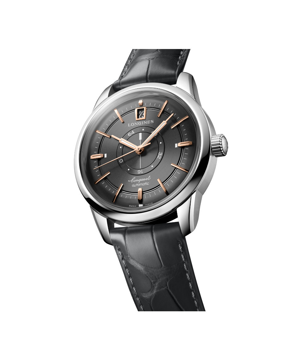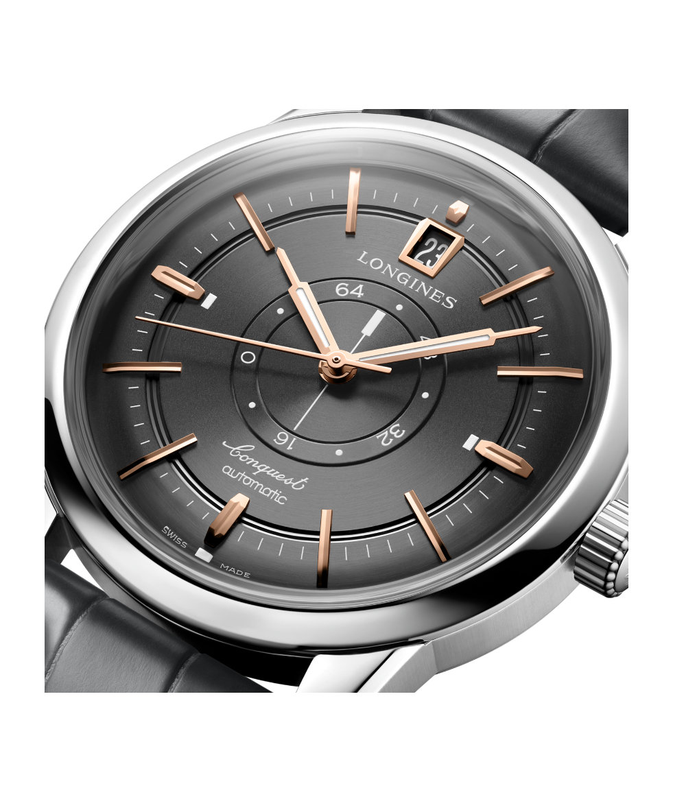 L'orologio Longines Conquest Heritage Central Power Reserve Auto 38mm si distingue per la sua cassa in Acciaio, finitura alternata dal diametro di 38 mm. Il design è incentrato sul quadrante Antracite, protetto da un resistente vetro in Zaffiro che assicura massima chiarezza.