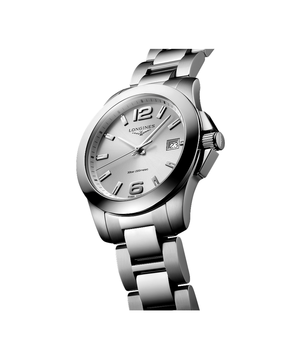 L'orologio Longines Conquest 34mm Argento Acciaio Quarzo si distingue per la sua cassa in Acciaio dal diametro di 34 mm. Il design è incentrato sul quadrante Argento, protetto da un resistente vetro in Zaffiro che assicura massima chiarezza.
