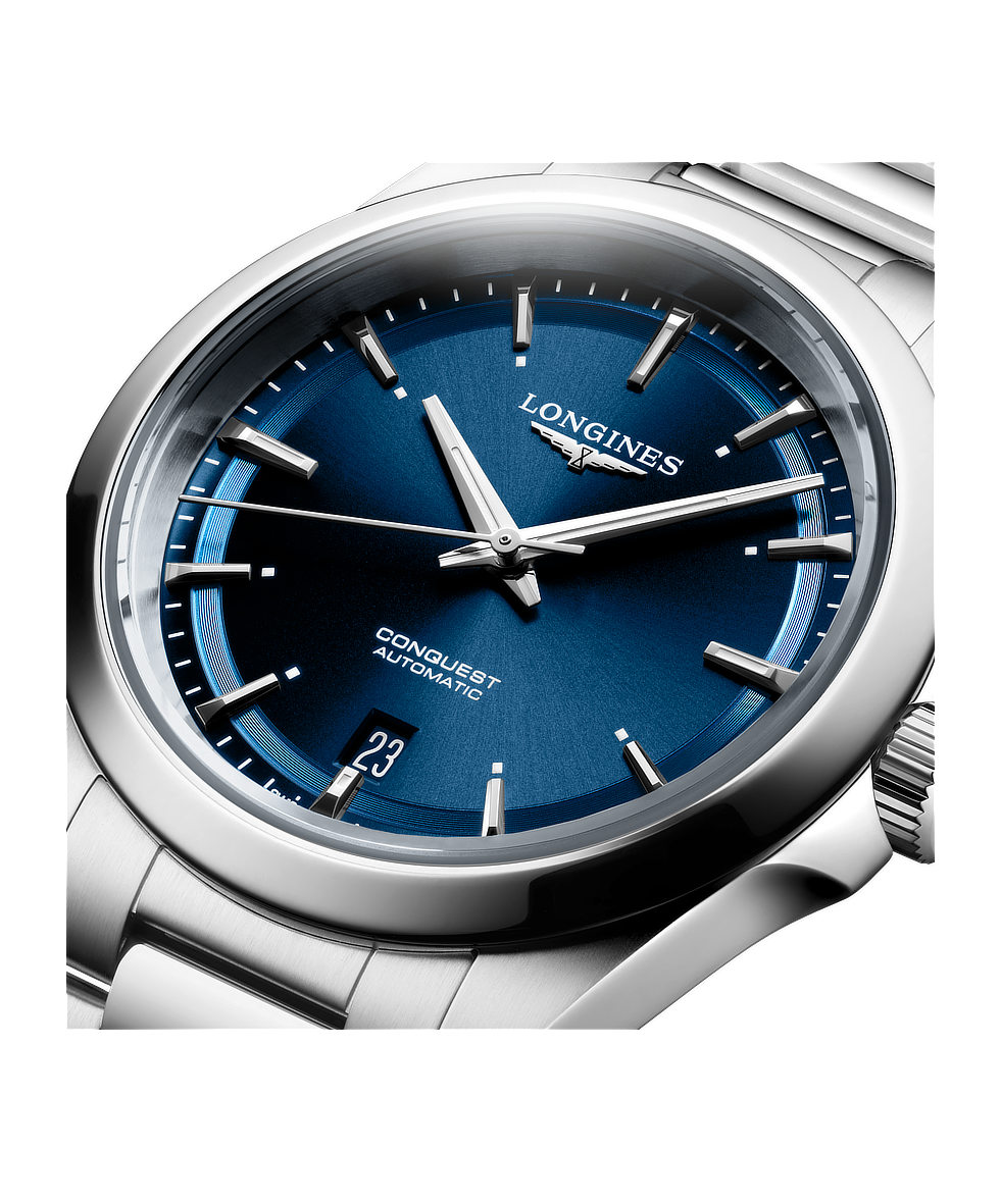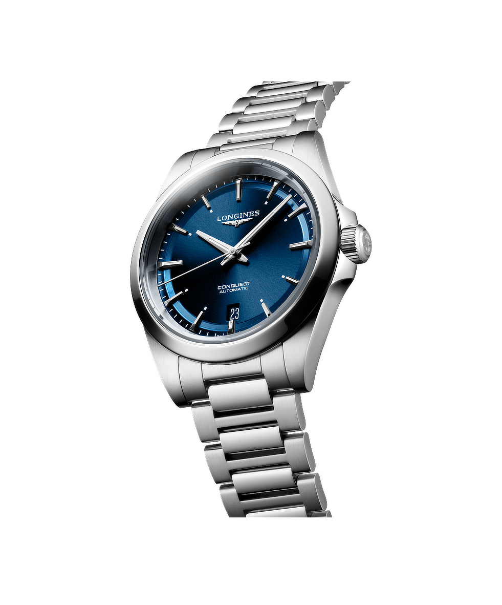 L'orologio Longines Conquest 38mm Blu Acciaio si distingue per la sua cassa in Acciaio dal diametro di 38 mm. Il design è incentrato sul quadrante Blu, protetto da un resistente vetro in Zaffiro che assicura massima chiarezza.