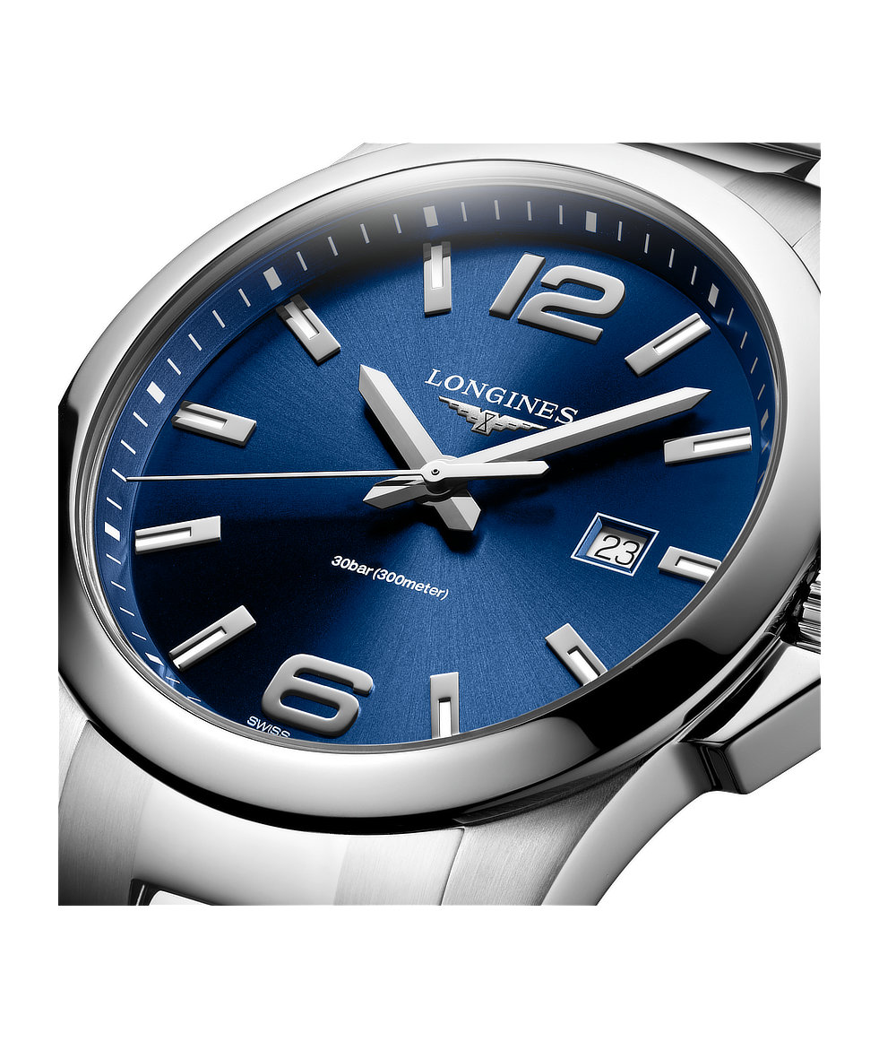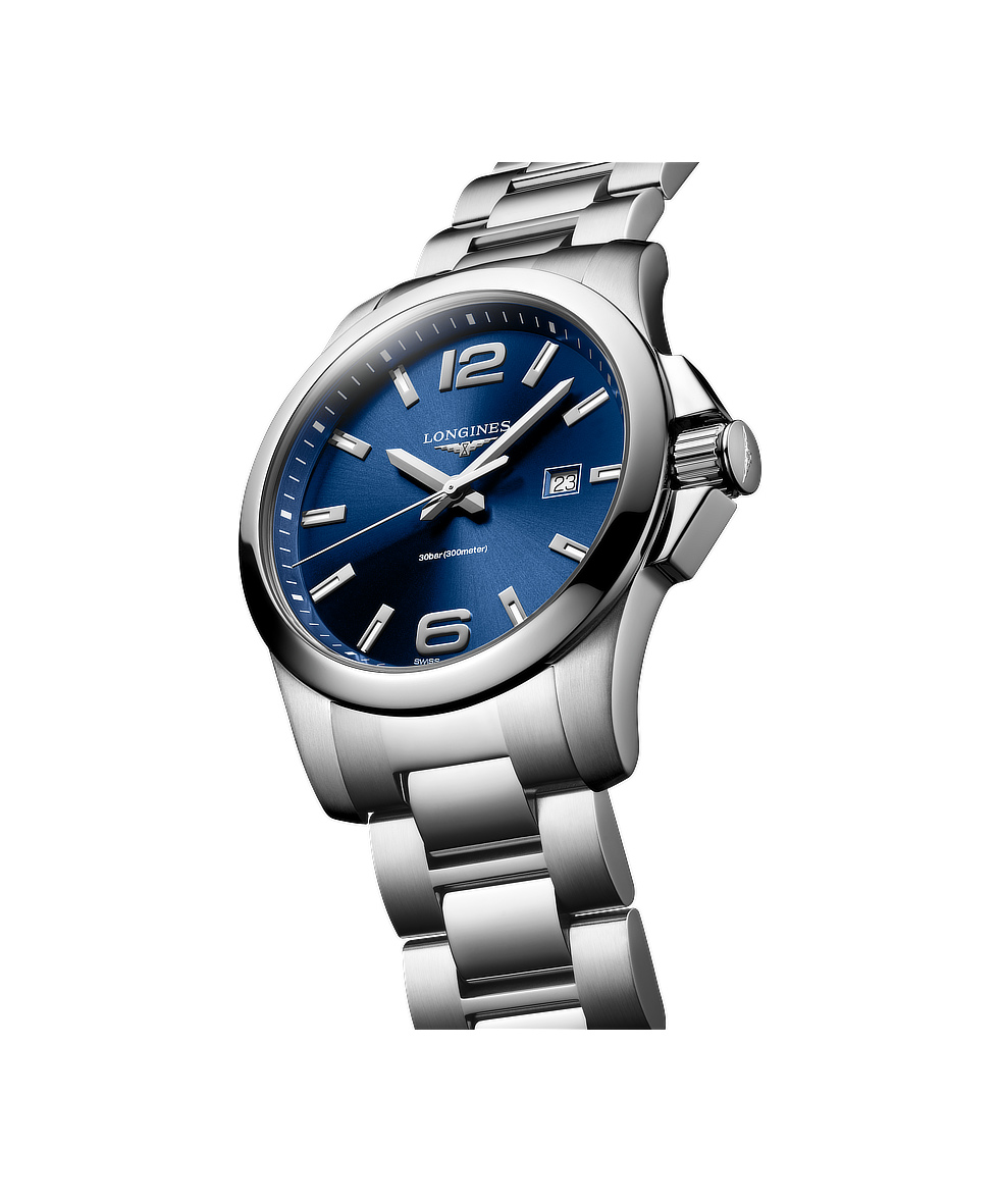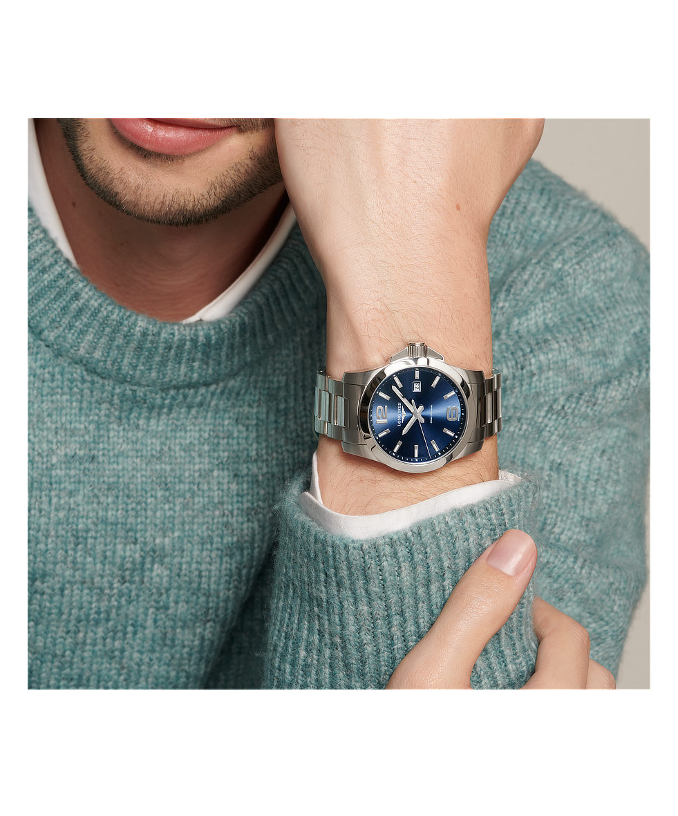 L'orologio Longines Conquest 43mm Blu Quarzo si distingue per la sua cassa in Acciaio dal diametro di 43 mm. Il design è incentrato sul quadrante Blu, protetto da un resistente vetro in Zaffiro che assicura massima chiarezza.