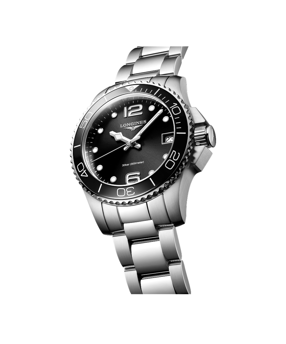 L'orologio Longines Hydroconquest 32mm Nero Lunetta Ceramica Acciaio Quarzo si distingue per la sua cassa in Acciaio dal diametro di 32 mm. Il design è incentrato sul quadrante Nero, protetto da un resistente vetro in Zaffiro che assicura massima chiarezza.