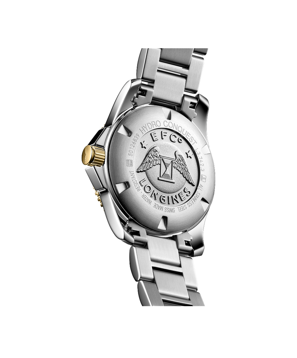 L'orologio Longines Hydroconquest Bicolore Giallo 41mm Nero Automatico si distingue per la sua cassa in Acciaio dal diametro di 41 mm. Il design è incentrato sul quadrante Nero, protetto da un resistente vetro in Zaffiro che assicura massima chiarezza.