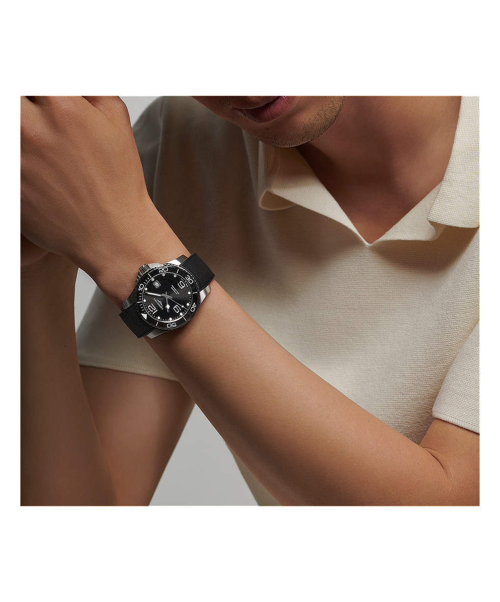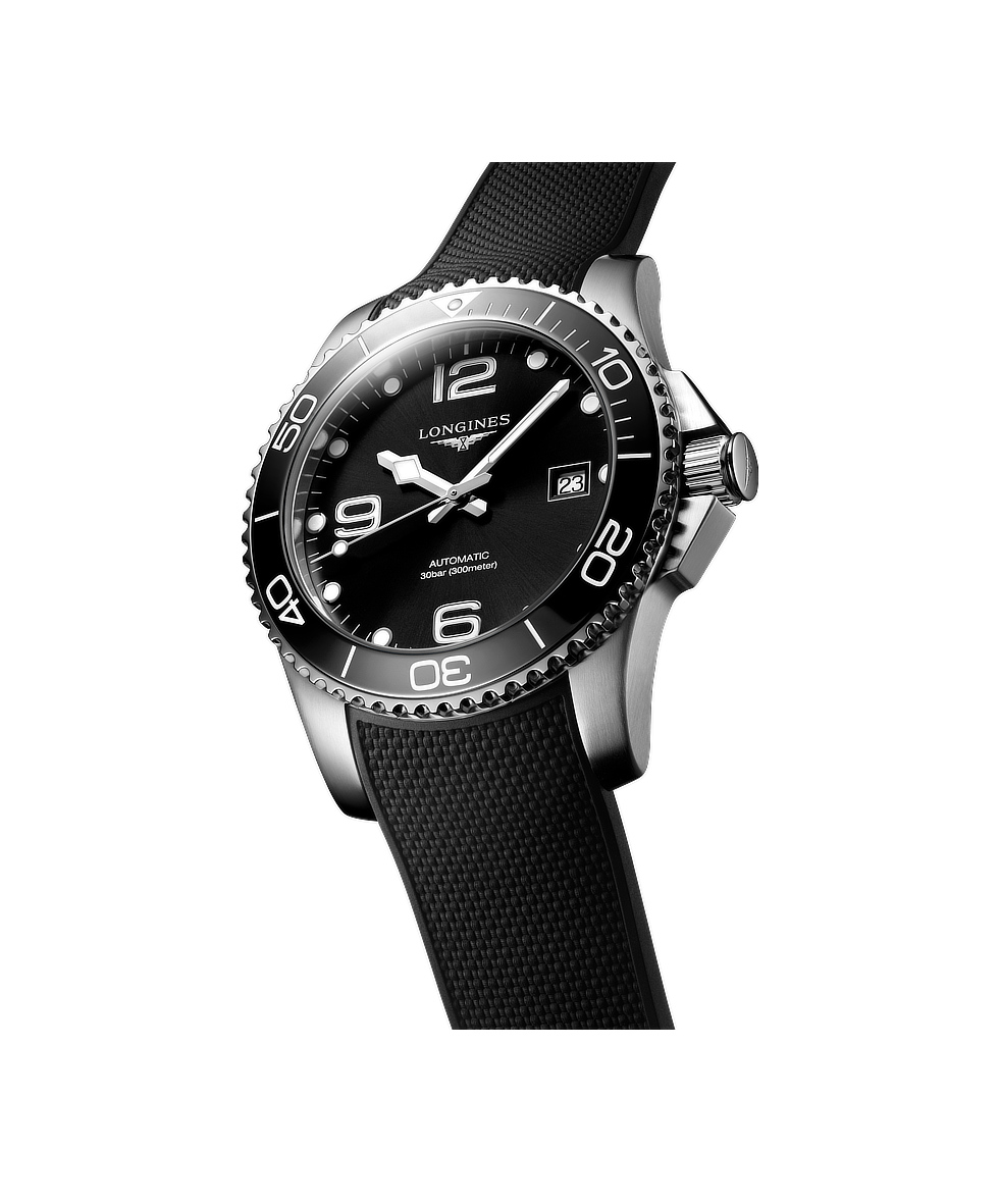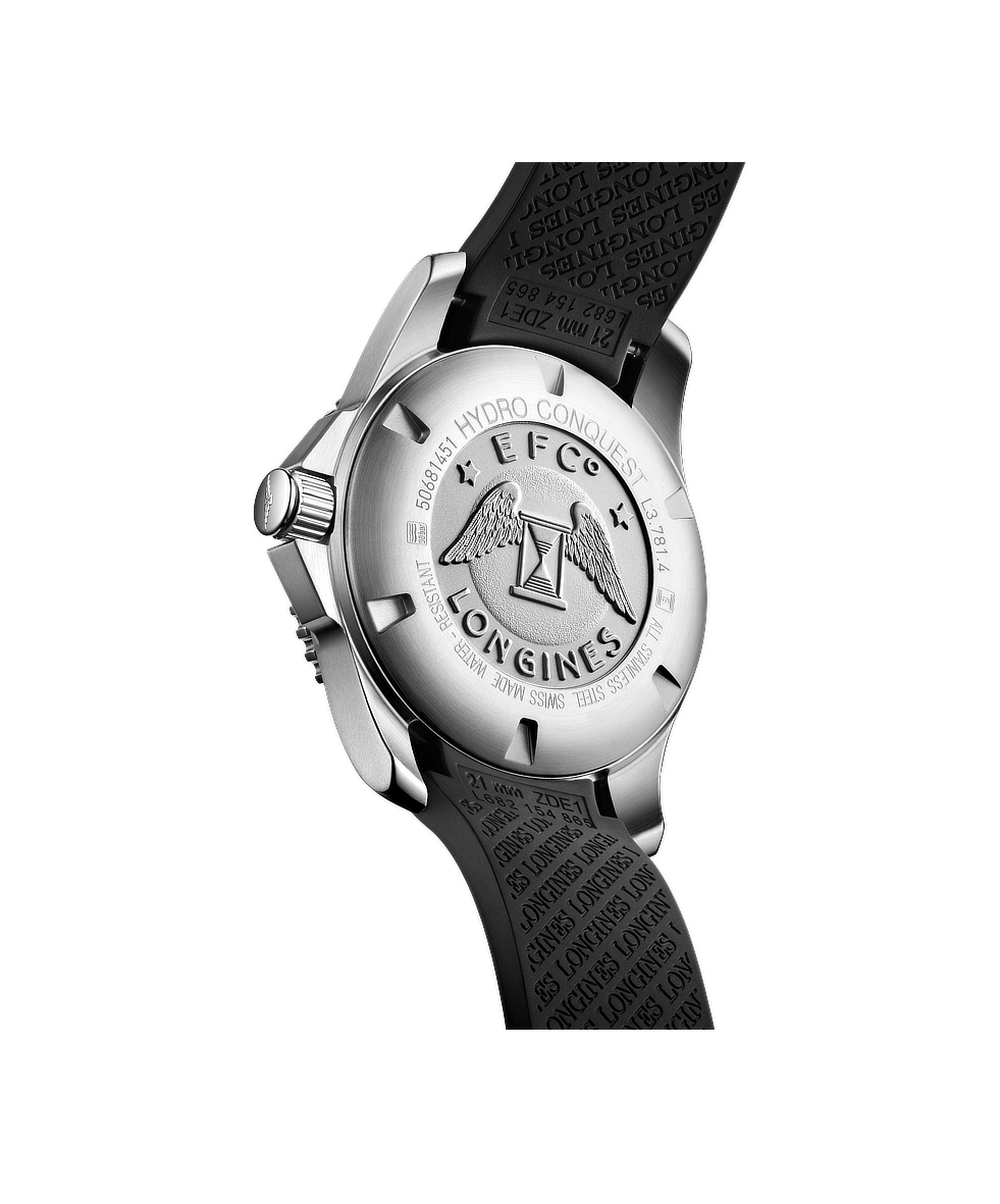 L'orologio Longines Hydroconquest 41mm Nero Lunetta Ceramica Gomma Automatico si distingue per la sua cassa in Acciaio dal diametro di 41 mm. Il design è incentrato sul quadrante Nero, protetto da un resistente vetro in Zaffiro che assicura massima chiarezza.
