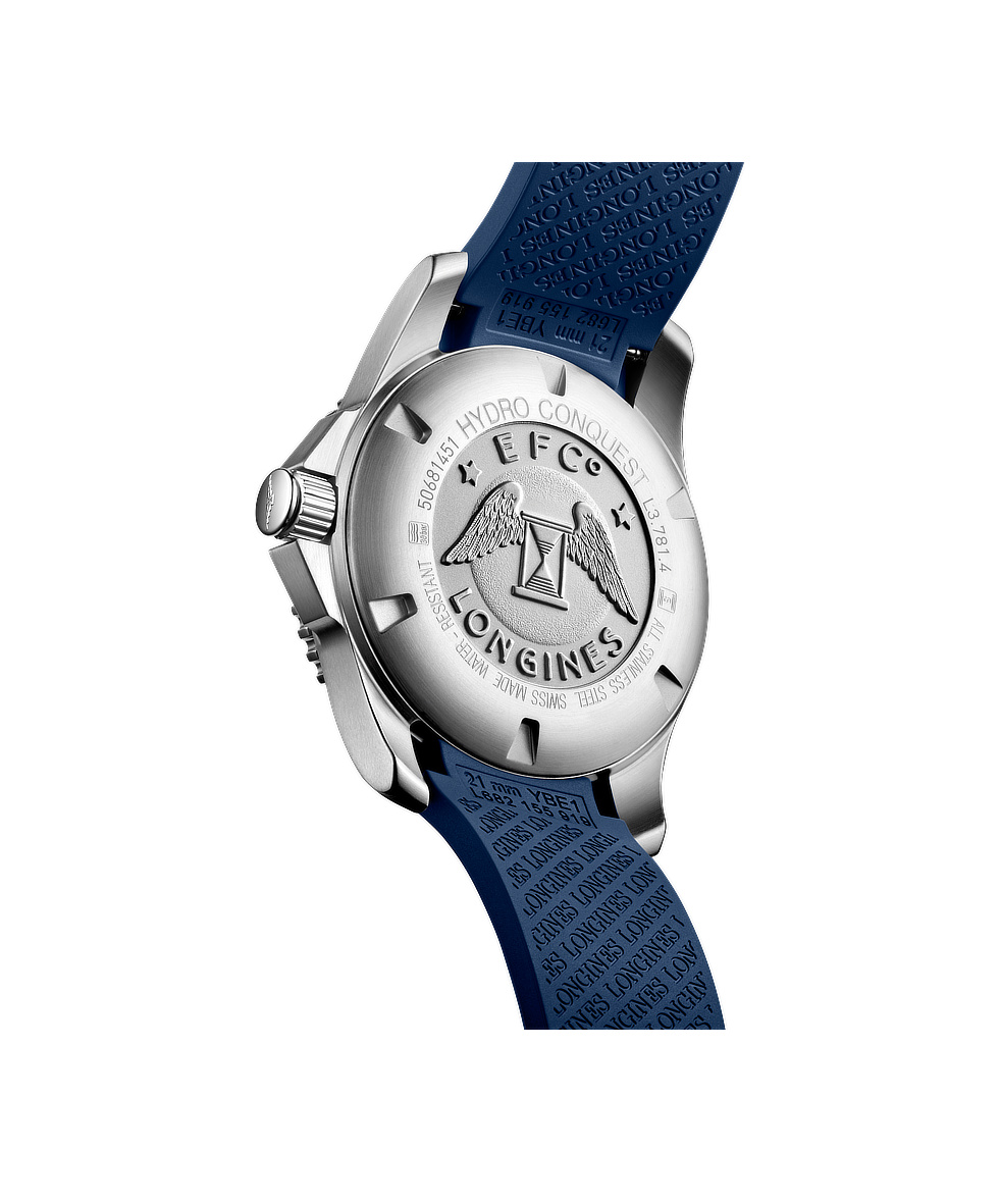 L'orologio Longines Hydroconquest 41mm Blu Lunetta Ceramica Gomma Automatico si distingue per la sua cassa in Acciaio dal diametro di 41 mm. Il design è incentrato sul quadrante Blu, protetto da un resistente vetro in Zaffiro che assicura massima chiarezza.
