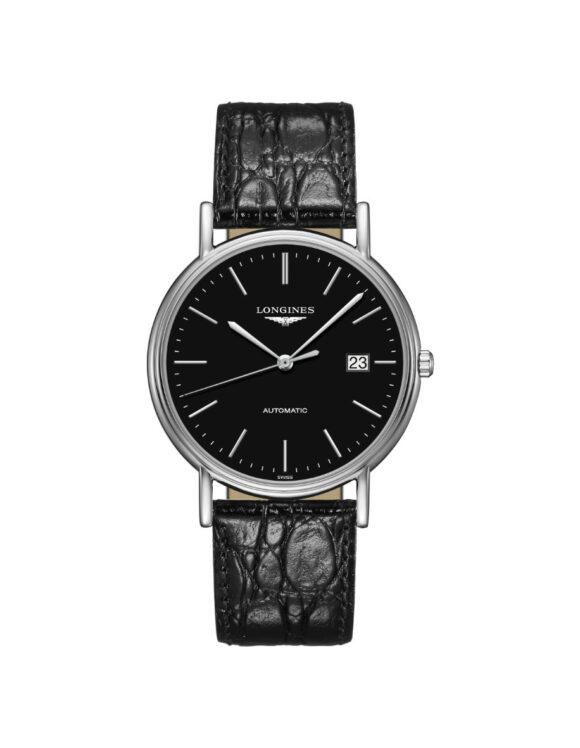 L'orologio Longines Présence si distingue per la sua cassa in Acciaio, finitura lucida dal diametro di 38.50 mm. Il design è incentrato sul quadrante Nero, protetto da un resistente vetro in Zaffiro che assicura massima chiarezza.