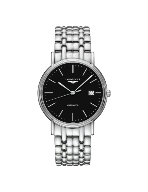 L'orologio Longines Présence si distingue per la sua cassa in Acciaio, finitura lucida dal diametro di 38.50 mm. Il design è incentrato sul quadrante Nero, protetto da un resistente vetro in Zaffiro che assicura massima chiarezza.