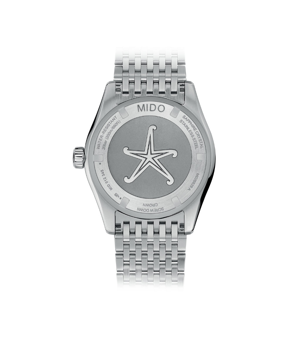 Il movimento automatico Mido Calibro 80, affidabile e preciso, garantisce una riserva di carica fino a 80 ore, ideale anche nei lunghi periodi di inattività. A protezione del quadrante, un vetro zaffiro con trattamento antiriflesso assicura una visibilità ottimale. L’orologio è inoltre dotato di impermeabilità fino a 200 metri, rendendolo adatto anche all’attività sportiva.