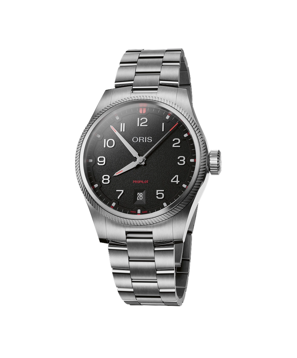 L'orologio Oris ProPilot Date 41mm Nero Acciaio Automatico si distingue per la sua cassa in Acciaio dal diametro di 41 mm. Il design è incentrato sul quadrante Nero, protetto da un resistente vetro in Zaffiro che assicura massima chiarezza.