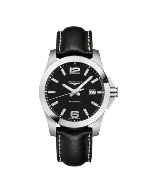 L'orologio Longines Conquest si distingue per la sua cassa in Acciaio, finitura alternata dal diametro di 41 mm. Il design è incentrato sul quadrante Nero, protetto da un resistente vetro in Zaffiro che assicura massima chiarezza.